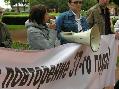 Митинг, посвященный 75-ой годовщине начала Большого террора. 11 августа 2012, Петербург, Троицкая площадь. Выступает актриса Лариса Дмитриева.