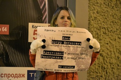 Митинг у Соловецкого камня на Троицкой площади, после чего - продолжавшееся весь день памятное чтение имен погибших в годы государственного террора. перемежавшееся заупокойными литиями клириков СПб митрополии; поездка на автобусах на мемориальное кладбище «Левашовская пустошь», где тоже торжественно-траурное мероприятие, включая чтение имен: а вечером – памятное чтение имен в саду Фонтанного дома (Музей Ахматовой); наконец, серия одиночных пикетов, посвященных памяти расстрелянных жильцов домов одной из центральных улиц города – улицы Восстания.