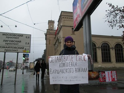 Одиночный пикет со сбором подписей под обращением к губернатору Петербурга о необходимости принять меры по сохранению выявленного объекта культурного наследия "Комплекс построек Варшавского вокзала" и связанных с ним строений XIX - начала XX в.в. пройдет 26 ноября с 14 до 15 у ТРК "Варшавский экспресс" (Обводный канал, д. 118).