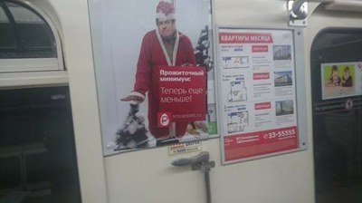 В вагонах поездов питерского метро неизвестные активисты расклеили новогодние демотиваторы, стилизованные под рекламу сотовой связи. На плакатах высокопоставленные чиновники и бизнесмены рассказывают о том, как все будет плохо. «Путешествуй теперь только в мечтах», - говорится на плакате с председателем ЦБ РФ Эльвирой Набиуллиной. «Роуминг патриотический. Молчим дома», - гласит надпись на постере с президентом РФ Владимиром Путиным.