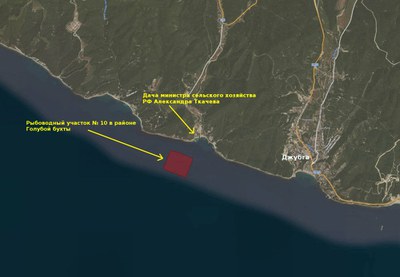 В перечне этих участков значится «Рыбоводный участок №10» в районе Голубой бухты и села Бжид Туапсинского района, инициатором формирования которого, согласно протоколу, выступило ЗАО «Агрокомплекс». «Агрокомплекс» - семейное предприятие министра Ткачева, огромная сельскохозяйственная бизнес-империя с большим разнообразием активов и видов деятельности - вплоть до пищевого производства полного цикла и продуктового ритейла (после того, как Ткачев стал министром сельского хозяйства, «Агрокомплекс» в несколько раз увеличил свои активы).