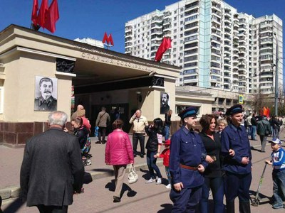 Ай, хорошо получилось! Весна, люди гуляют с детьми мимо портретов, Сталин улыбается им в усы… Патриотическое воспитание, бля буду.