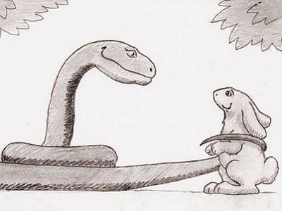 – Я одного никак не могу понять, – сказал юный удав, только недавно научившийся глотать кроликов, – почему кролики не убегают, когда я на них смотрю, ведь они обычно очень быстро бегают?