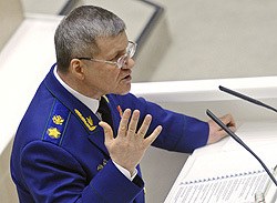 В рамках правительственного часа был предусмотрен доклад генерального прокурора РФ Юрия Чайки о том, как исполняется так называемый "закон об НКО". Полное название доклада генпрокурора – "Об итогах проверки требований исполнения федерального закона "О внесении изменений в отдельные законодательные акты в части регулирования деятельности некоммерческих организаций, выполняющих функции иностранного агента".