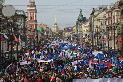 По нашей информации, 1 мая согласовано шествие по Невскому проспекту для десятка разных колонн. По главной питерской магистрали пойдут единороссы и «эсеры», коммунисты и жириновцы, Федерация профсоюзов, и «Российский объединенный трудовой фронт», «СОЦПРОФ» и националисты, «другороссы» и гопники НОДа, и даже борцы за сухой закон.