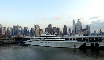 Недавно в гавань Нью-Йорка медленно и величаво вошел корабль не корабль, а плавучий дворец стоимостью в полтора миллиарда долларов, оснащенный противоракетной и противовоздушной системами и лазерной защитой. На его борту - два вертолета и малогабаритная подводная лодка, которая предназначена для обследования днища – чтоб, не приведи господь, к нему не прицепили какую-нибудь взрывающуюся гадость. Экипаж - 60 моряков, среди которых ветераны британского спецназа. Длина корабля 533 фута – это около двухсот метров. Корпус его - из пуленепробиваемой стали, остекление – из бронированных новейших материалов. Но это не корабль, а яхта. Такой яхты в Нью-Йорке еще не было. Называется она Eclipse, что означает «Затмение» (солнечное?).