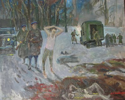 «У того, кого ведёшь расстреливать, руки обязательно связаны сзади проволокой. Велишь ему следовать вперёд, а сам, с наганом в руке, за ним. Где нужно, командуешь «вправо», «влево», пока не выведешь к месту, где заготовлены опилки или песок. Там ему дуло к затылку и трррах! И одновременно даёшь крепкий пинок в задницу. Чтобы кровь не обрызгала гимнастерку и чтобы жене не приходилось опять её стирать».