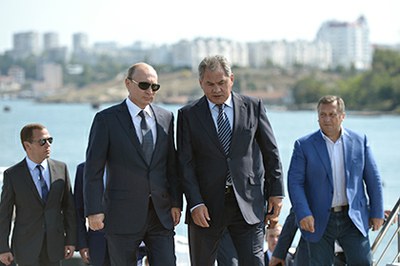 В Севастополе В. Путин осмотрел музейную экспозицию возрождённой Константиновской батареи, посетил Малахов курган и президентское кадетское училище. Кроме того, глава государства принял участие в этапе экспедиции Русского географического общества.