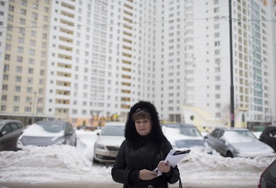 Дверь открывает 62-летняя женщина в домашнем халате с голубыми маргаритками и тапочках. Костыря достает планшет, которым пользуется для записи ответов. Пожилая женщина рада поговорить. «Я смотрю сериалы, — говорит она. — По телевизору кругом война, война и ничего кроме войны». Но она доверяет Путину — только ему, не его окружению. Главная проблема, которая ее занимает, — это цена лекарств. «Пятьсот рублей здесь, пятьсот там, еще триста здесь. Все так дорого!» — говорит она. Пятьсот российских рублей — это около шести с половиной долларов. При ее пенсии в 225 долларов в месяц свести концы с концами нелегко.