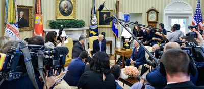 Но и на этом история не закончилась – уже через несколько часов пресс-служба Трампа изменила акценты и начала говорить о "встрече" глав государств. Вслед за ней большинство американских СМИ, начиная с Associated Press, исправили свои оценки визита.