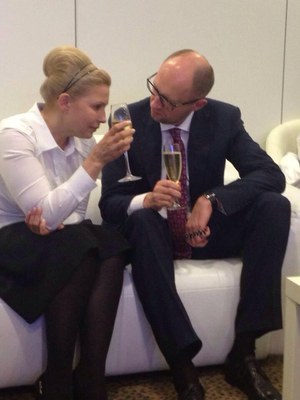 После объявления предварительных результатов президентских выборов в / на Украине. На снимке: проигравшая кандидат в Президенты Украины Юлия Тимошенко и ее соратник по партии «Батькивщина», премьер-министр Украины Арсений Яценюк. А. А.