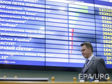 По официальным результатам выборов в Верховную Раду Украины восьмого созыва по партийным спискам проходят шесть политических сил: "Народный фронт" – 22,14% (64 депутата); Блок Петра Порошенко – 21,82% (63 депутата), Объединение "Самопоміч" – 10,97% (32 депутата), Оппозиционный блок – 9,43% (27 депутатов), Радикальная партия Олега Ляшко – 7,44% (22 депутата), ВО "Батьківщина" – 5,68% (17 депутатов).