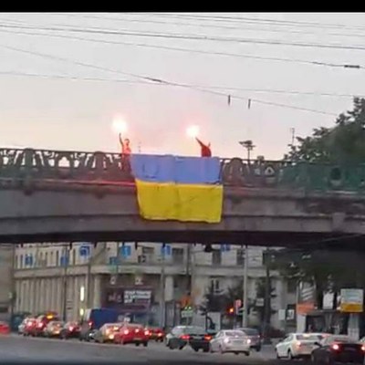 В воскресенье, 24 августа, вечером в Санкт-Петербурге двое молодых людей вывесили флаг на мосту, который находится над Московским проспектом.