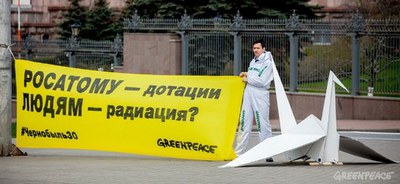 В память о 30-й годовщине чернобыльской трагедии мы организовали серию пикетов в Москве: атомная энергетика не может быть безопасной, об этом нельзя забывать! Также как нельзя забывать про людей, которые живут в зоне радиационного загрязнения и которых лишают льгот и компенсаций.