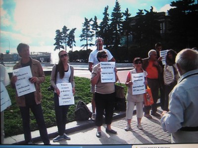 Акция длилась час с небольшим. Жаль, что народу собралось там немного. Предлагаю посмотреть две фотографии, на первой - пикетчики с плакатами, на второй Андрей Демидов выступает. Есть и видео некоторых выступлений, но его не разместить в почтовом с общении – слишком велик объём требуемой памяти.