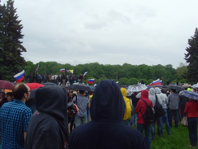 На этот раз (по сравнению с 26 марта) на Марсовом поле никакого мероприятия, организованного НОДовцами, не было. Однако полиции было значительно больше. Несмотря на это, люди, как и 26 марта, забирались на стены памятника, выкрикивали свои лозунги, а оттуда их сгоняли «космонавты». Но после этого люди опять взбирались на опустевшие стены, толпа внизу подбадривала их, а потом их снова сгоняли полицейские. Со стен опять кричали очень неприятные для власти слова (https://youtu.be/88X9gvX1h5M - вор , https://youtu.be/GU75Fd1b6dA - партия жуликов и воров, https://youtu.be/28oiPfIxBjU - не боимся), и их подхватывали люди снизу.