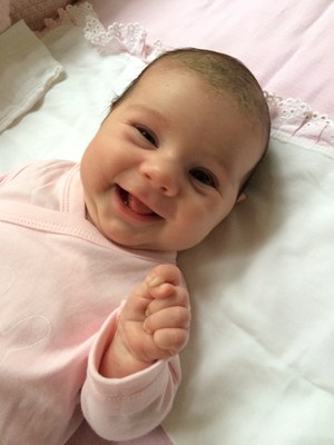 Пока одни люди размышляют о счастье, другие творят несчастья, а третьи в счастье пребывают, как жизнерадостная девочка с дулей, чью фотографию прилагаю. Это моя новая внучка Майя, дочь той самой Саши. Дуля, в которую сложились пальчики двухмесячного ребёнка, настоящая. Родители её подсмотрели, а не подстроили.