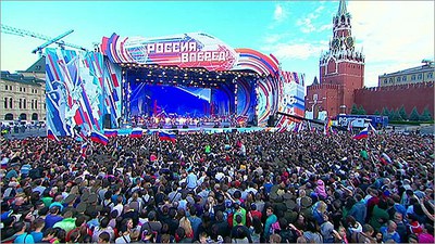В советскую пору жизнь Красной площади была по преимуществу торжественно-помпезно-скорбной и только сравнительно изредка, раза три-четыре в году, проходили демонстрации, парады, огни праздничных фейерверков и салютов подсвечивали кремлевскую «стену плача» и примкнувшие к ней надмогильные сооружения. Теперь же площадь обрела свою многоликость, здесь часто и регулярно поют и танцуют -- как когда-то на площади Бастилии в Париже -- по многим веселым поводам! И Вождь, спящий в Мавзолее, и соратники в могилах этому никак не мешают, а, может быть, даже и молчаливо приветствуют – как нам это знать… Песни и пляски, музыка и смех, прикольные диалоги юмористов, классические арии и сатирические куплеты – на все вкусы собравшейся пестрой многотысячной толпы -- звучат здесь до глубоких сумерек…