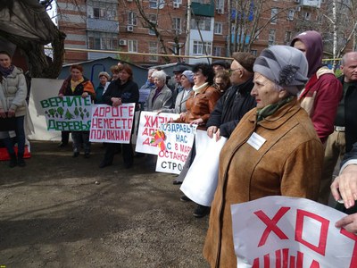 В конце митинга была зачитана его резолюция в которой жители сформулировали свои требования к федеральным, региональным и муниципальным властям. Основное, что они требуют - это отказ от строительства дополнительной переходно-скоростной полосы на участке перед жилыми домами по улице Ростовское шоссе и восстановление зоны зеленых насаждений перед этими домами.