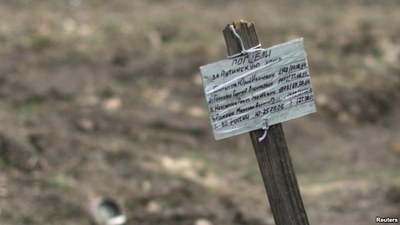 Под Донецком найдено стихийное захоронение с надписью "погибли за путинскую ложь"