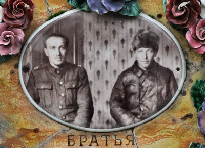 На снимке: Портреты добровольцев Русской Северной армии братьев Н. и В. Кудрявцевых на памятнике (кладбище Сент-Женевьев до Буа).