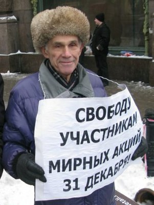 «Граждане ваша акция незаконна, расходитесь, тут дети» - монотонно повторял в мегафон молодой милиционер. Но люди, собравшиеся возле Александровской колонны, не обращали внимания на эти призывы, стояли группами, разговаривали, иногда пели, шутили. Неподалёку стоял небольшой милицейский автобус, около него - несколько «космонавтов», видимо, ожидавших каких-то команд от полковника милиции, озабоченно общавшегося с кем-то по мобильнику. Такую картину я увидел, когда с небольшим опозданием (минут на 10) относительно назначенного начала несогласованного с властью митинга пришёл на Дворцовую площадь 31 октября 2010 года. И вдруг, оглянувшись на шум, увидел, как несколько «космонавтов» выхватили из группы стоявшей неподалёку молодёжи девушку и тащат её в автобус. Это была Наташа Грязневич, на её груди был укреплён маленький плакатик, на котором было изображено число 31. И только. Её усадили на заднее сидение. Автобус оставался на прежнем месте, милиционеры и «космонавты» застыли в прежних позициях. Подойдя к автобусу, я громко спросил, за что её «взяли», и куда её повезут. Никто не ответил. Лишь молодой милиционер продолжал заунывно повторять свой призыв к собравшимся - разойтись. Но люди были возмущены происшедшим: мирное собрание горожан на просторной площади города, разрешённое основным законом нашей страны – Конституцией, для нашей милиции, получается, ничего не значит. Её действия определяет лишь приказ начальства, даже если он преступный. И враньё про детей, которое мы слышали через мегафон, тоже объяснить было трудно. Самые решительные из собравшихся на площади попытались встать перед автобусом и не дать ему увезти арестованную девушку. Но «космонавты» оттеснили их, и автобус уехал.