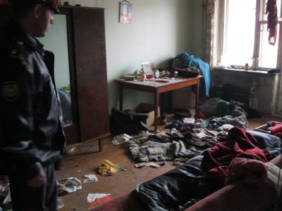 Живет Галина в однокомнатной квартире. От когда-то благоустроенного жилища осталась только раковина. Чугунную ванну вынесли друзья-собутыльники. На мой вопрос, как теперь моется, Галина развела руками. Остатки обоев и штукатурки наверняка помнят еще Брежнева. Комната завалена хламом. Как рассказал Александр Витальевич, в квартире часто находят пристанище бомжи, а также их спутники – вши и клопы. Видимо, для всех них Галина и бережет остатки ватного одеяла, курток и пальто. Все это свалено на полу комнаты. Там же на стене висит картинка в рамочке. Вероятно, когда-то Галина любила не только водку, но и живопись. Теперь она на пенсии, которой хватает максимум на неделю. Желающих обмыть с Галиной очередной перевод из пенсионного фонда находится много.