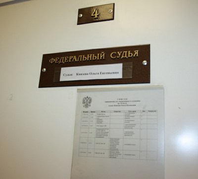 Сегодня утром на зале №4 в "аншлаге" информации о рассмотрении дела Дженнифер не было (как оказалось, "аншлагом" в юриспруденции называют объявление-график назначенных на текущий день судебных слушаний на двери судебного зала). Но в канцелярии по гражданским делам подтвердили, что оно состоится в 10:40.