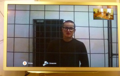 Зал, в котором проходило заседание — большой, стены задрапированы серой подкладочной тканью. Слева и справа от судьи — вход не в совещательную комнату, а в кабинеты (или залы?) № 17 и №19. Идет процесс, а сквозь зал проходят люди то в один, то в другой кабинет. Мониторы видеотрансляции из СИЗО висят над прокурором и следователем. Смешанное впечатление открытости и бутафорности одновременно. Гарнизонный судья с прокурором по надзору за ФСБ не просто однофамильцы, но и отчества одинаковые. В начале судья спрашивает: нет ли отводов к составу, вдруг родственные связи или какая-то иная заинтересованность? Но у заявителей жалобы отводов и даже вопросов не оказалось — не