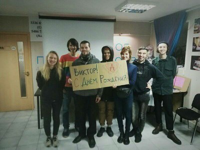 Несколько дней перед днём рождения Виктора его группа поддержки собирала фотографии с поздравлениями. Одна из последних была сделана вчера на вечере солидарности.