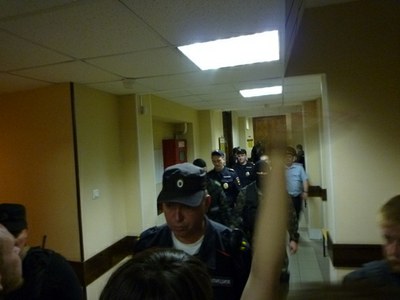 После этого Юлиана Бояршинова провели по коридору только два раза. Он успел улыбнуться друзьям и родителям. Виктор Филинков выглядел очень строго, смотрел перед собой, и в коридоре суда его сопровождали собровцы люди в масках и майор полиции.