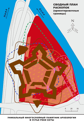 Органы охраны памятников Санкт-Петербурга склонны считать, что вся территория Охтинского мыса полностью изучена. Это не соответствует действительности. Только в пятне предполагавшейся застройки Охта-центра сохраняются рвы и бастионы крепостей XIII–XVII вв., а также остаются нераскопанными около 4000 квадратных метров средневекового культурного слоя и более 20000 квадратных метров культурного слоя эпохи неолита и раннего металла, перекрытые средневековыми фортификациями. В настоящее время часть раскопов на Охтинском мысу остается незаконсервированной, и раскрытые исторические объекты подвергаются разрушению.