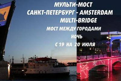Крыло разведенного моста как киноэкран. Мульти-мост: Амстердам – Петербург