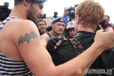От Когита!ру: День десантника 2013 в Петербурге отмечен не только полуденным маршем ветеранов ВДВ от Дворцовой до Марсова поля, но и скандальной новостью о "смертельном номере" одного защитника прав ЛГБТ , на 15 секунд вставшего в одиночном пикете на Александрийского столба.