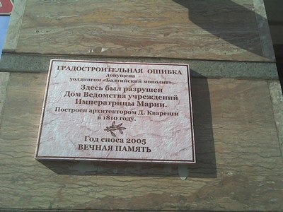 Таблички на местах градостроительных ошибок размещают активисты Движения сопротивления имени Петра Алексеева (ДСПА) в рамках кампании"по маркированию объектов градостроительного вандализма периода правления Матвиенко". Сегодняшняя акция - уже вторая (первая акция была приурочена ко дню города 27 мая 2009 года - подробнее о ней можно прочитать здесь).