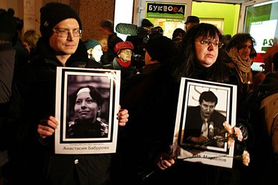 Акция памяти Станислава Маркелова и Анастасии Бабуровой в Петербурге