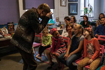 Катя Толстая, детский художник-иллюстратор, провела творческую встречу, в ходе которой были прочитаны «Истории про маленького кролика», после чего дети сами рисовали свои истории.