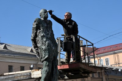 "Мы продолжаем содействовать процессу передачи бесхозных памятников на баланс города, но пока, к сожалению, их целостность и чистоту никто не контролирует. Памятнику академика Сахарова повезло гораздо больше, чем Соловецкому камню и монументу работы Шемякина, но его никогда не реставрировали, не мыли специальными растворами. Бронзовая скульптура, облюбованная голубями, имела, мягко говоря, не лучший вид. Поэтому в общегородской День благоустройства я и сотрудники моего аппарата решили привести его в порядок, – рассказал Александр Шишлов. – Нас поддержал директор Государственного музея городской скульптуры Владимир Тимофеев, который направил нам в помощники реставраторов, и вместе с ними мы впервые за 12 лет очистили монумент".
