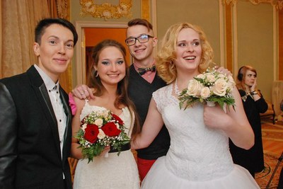 ЛГБТ-активисты раскрыли подробности постфактум (первые фотографии появились в сети после 19 часов, Марина Теодори в 16:57 сообщала о факте бракосочетания подруги и желала ей счастья, не раскрывая подробностей). Между тем Ирина Шумилова - по документам мужчина-трансгендер, "проходит курс гормонотерапии и в скором будущем откорректирует биологический пол с мужского на женский". Алёна Фурсова - биологическая женщина. Однако активисты и СМИ этот брак называют "однополым". Администрация дворца бракосочетания не возражала против регистрации "двух невест". На церемонии вчера вечером присутствовали друзья и ЛГБТ-активисты.
