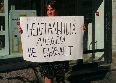 Пикеты с требованиями остановить процедуру выдворения Али Феруза, которому на родине, в Узбекистане, грозят пытки и преследования, состоялись в Петербурге 3 августа. Евгения Кулакова (на фото сверху) написала в соцсетях после участия в пикете на Невском проспекте: