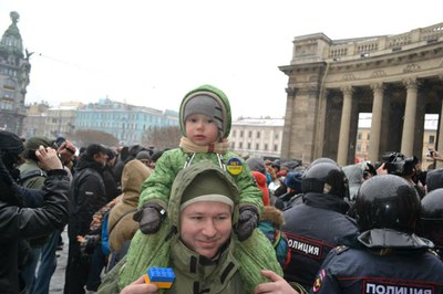 По последним подсчётам, на площади у Казанского собора собралось в субботу не менее 500 петербуржцев. Сотрудников правопорядка было не менее 200.