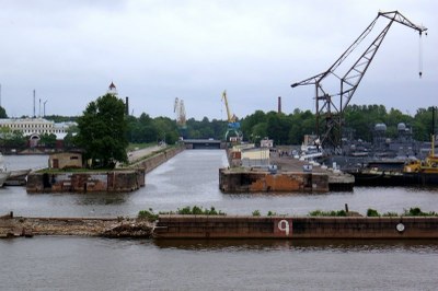 Знаменитое судоремонтное предприятие - Кронштадтский морской завод - после десятилетнего строительства был торжественно открыто в марте 1858 года как Пароходный завод. В 1922 году переименовано в Кронштадтский морской завод, с 1997 года - федеральное государственное унитарное предприятие "Кронштадтский морской завод" Министерства обороны РФ. Подчинен Управлению судоремонтных заводов ВМФ. Имеет лицензии на ремонт вооружения и военной техники, выполняет комплексные ремонты кораблей и судов ВМФ и гражданских. Площадь застройки - 62 га. Пять сухих доков общей протяженностью стапельных оснований 1.000 метров обеспечивают доковый ремонт кораблей до 40.000 тонн (из справки Регнум.ру). Занимает площадь в 70 га.