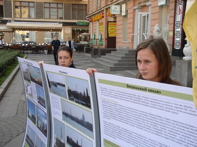 На фотографии: пикет "Живого города" 29 августа 2009.