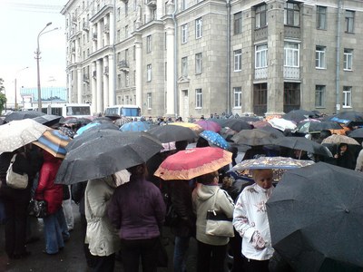 Магистраль перекрыта в одном направлении, милиции и представителей администрации Калининского района, по словам бизнесменов, на месте нет.