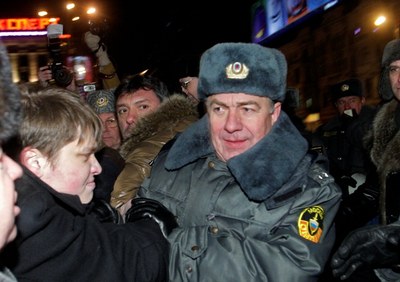 Примерно в 18.10 милиция стала окружать демонстрантов, которых почти сразу стали задерживать. Хватали всех: и тех, кто выкрикивал лозунги или держал плакат, и просто стоявших в толпе. Задержанных оттаскивали в милицейские автобусы и развозили по меньшей мере в пять центральных ОВД, где их оформляли и назначали дату административных слушаний.