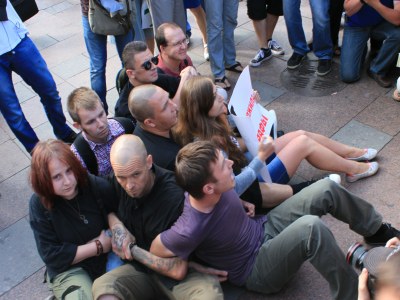 Полина Петрова, пресс-секретарь "Другой России" в Петербурге, рассказывает: "Они сели на асфальт возле выхода из метро, скандировали лозунги "Плевать мы хотели на ваши запреты!", "Россия без Путина", "Они не видят, они не слышат, они не ведают, что творят!" и другие... Активистов взяли в двойное кольцо сотрудники полиции и ОМОНа и по одному выносили на руках и запихивали в автозак".