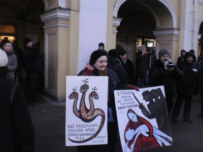 Описываю это так подробно, поскольку уже познакомилась с весьма любопытной версией полиции: «Как сообщили MR7 в пресс-службе ГУ МВД по Санкт-Петербургу и Ленобласти, задержанная Евгения Литвинова представилась внештатным корреспондентом одного из СМИ, однако при ней не было ни соответствующего удостоверения либо редакционного задания, ни каких-либо документов вообще.