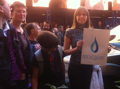 Михаил Новицкий расчехлил гитару и спел свою песню про Петроградскую сторону, жителем которой он является, здесь «в каждом доме не спит художник, в каждом камне хрипит война». А потом хит борьбы с Газоскребом – песню «Это наш город», не раз исполнявшийся хором на митингах припев:
