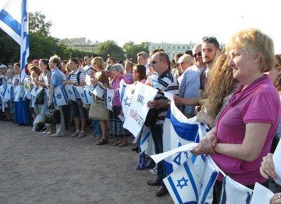 Генеральный консул Израиля в Петербурге Эдуард Шапиро заявил: «Наш народ готов жертвовать многим, но не готов жертвовать своими гражданами». Он отметил, что за последние 9 лет, с тех пор как появилось движение Хамас в сторону Израиля было выпущено 10 тысяч ракет. По его словам, в лице Хамаса «мы имеем очень жестокого врага, но наши солдаты, рискуя жизнью продолжают охранять наши земли».