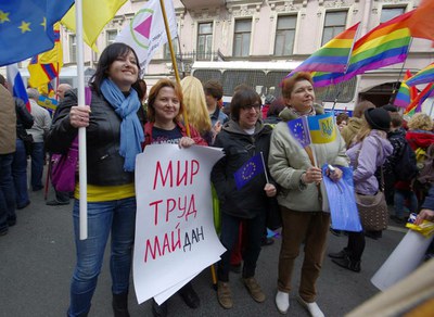 Мы шли по Невскому проспекту под музыку. Звучали гимн Украины, гимн России (не нынешний, восстановленный советский, а "Патриотическая песнь" Глинки) и гимн Европы ("Ода к радости" Бетховена). У меня так захватило дух, когда мы шли...